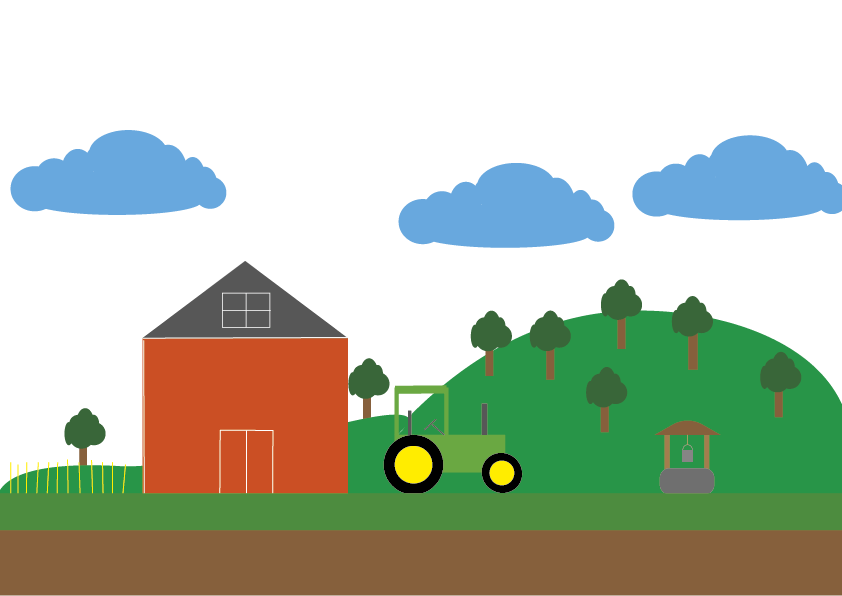 Tehdessä tätä kuvaa opin kuinka käyttää illustraattorin ominaisuuksia. Tehdessä kaivoa huomasin kuinka kolmiota voi muuttaa kaarevaksi. Ämpäriä tehdessä sain tietää kuinka tehdä symmetrinen kaari. Puita ja pilviä pystyin yhdistämään toisiin saman värisiin vähentääksen ylimääräisiä viivoja.